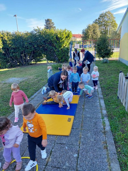 Starejše skupine so se z avtobusom odpravile na izlet v Adrio Ankaran, kjer so ob morju preživeli čudovit dan poln raziskovanja, gibanja in druženja. Mlajši otroci so se medtem razveselili športnega dopoldneva na vrtčevskem igrišču, kjer so skozi različne igre in izzive krepili prijateljske vezi in veselje do gibanja.