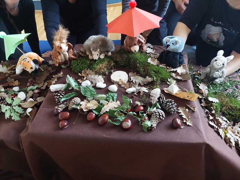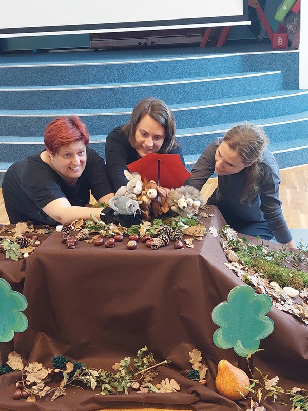 V tednu otroka smo izvedli prvo lutkovno predstavo za naše najmlajše z naslovom »Pod medvedovim dežnikom«.