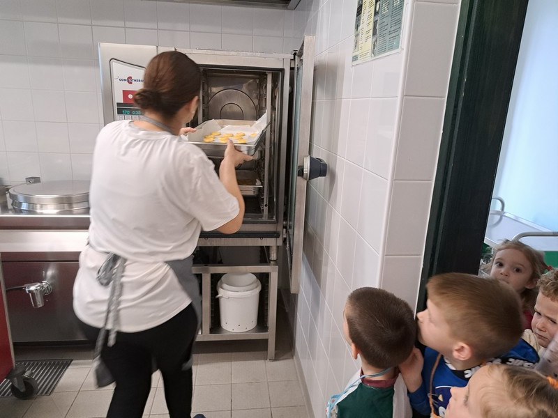 Otroci so po korakih sledili zapisanemu postopku: pripravili so sestavine, jih tehtali, šteli, mešali, zgnetli testo, oblikovali kroglice, jih potlačili, postavljali na pladnje in odnesli v kuhinjo, kjer jih je kuharica dala v pečico. Po dvanajstih minutah so bili piškoti pečeni in pripravljeni za okušanje. Nad celotnim procesom so bili izredno zadovoljni, na rezultat/piškote, pa zelo ponosni.