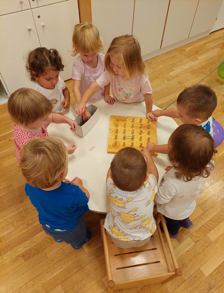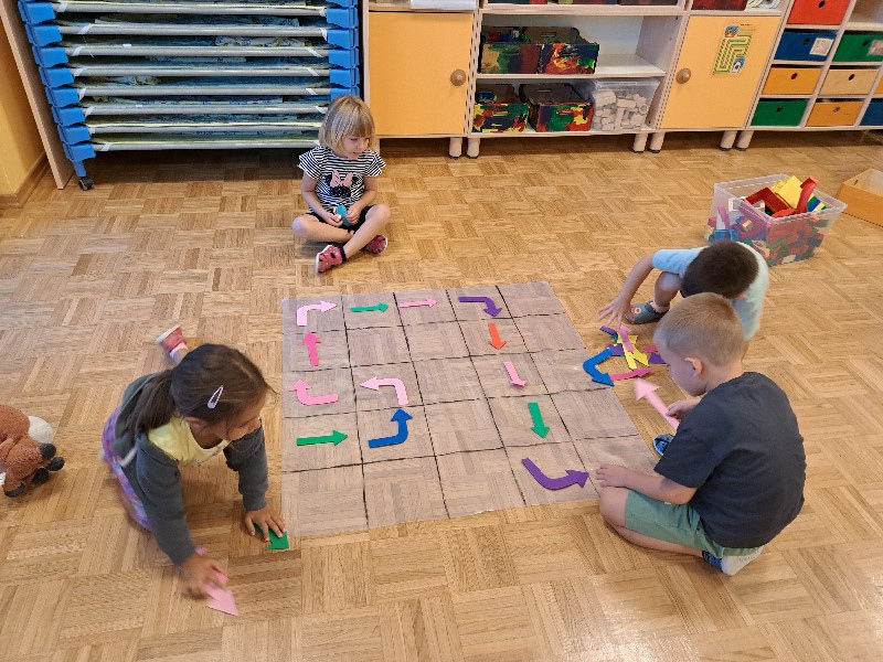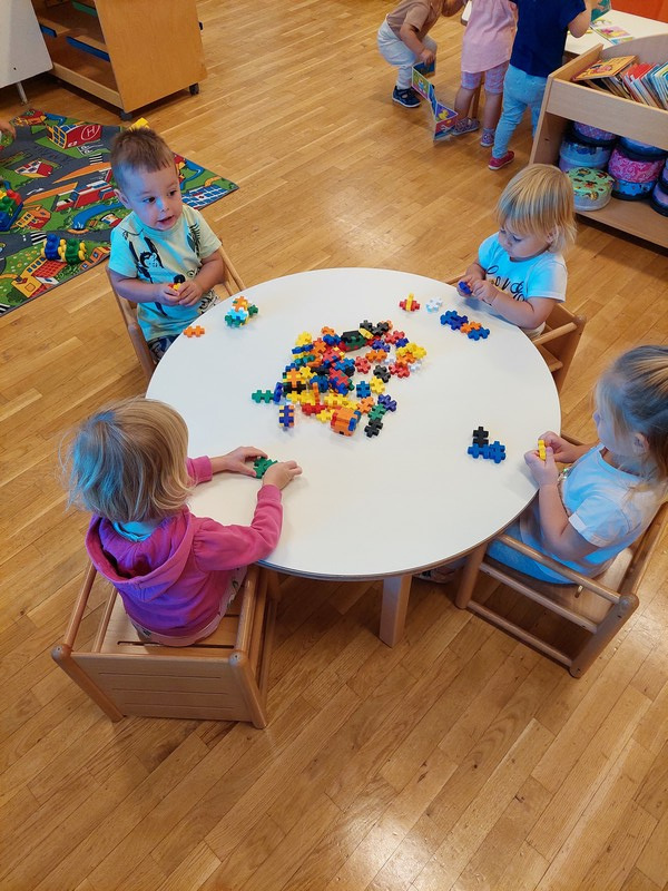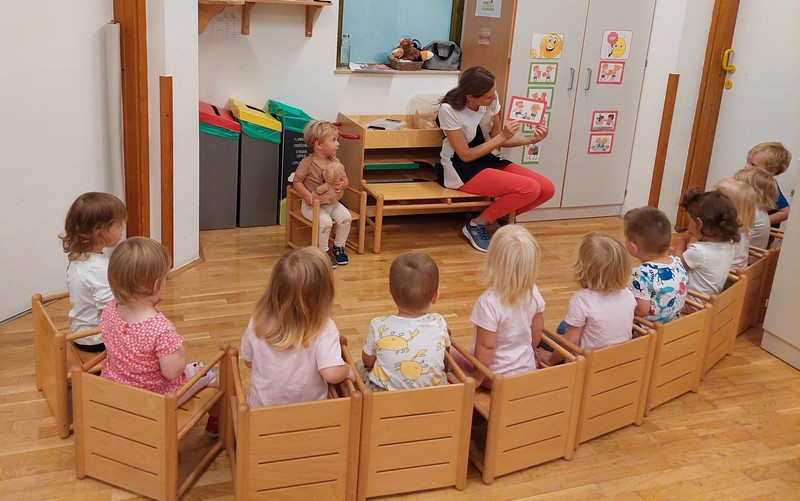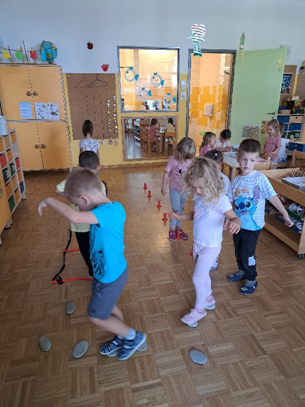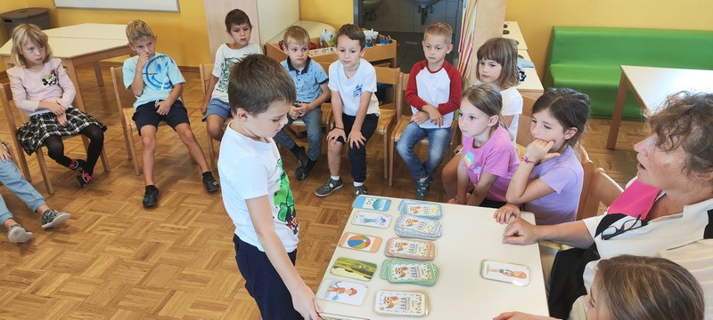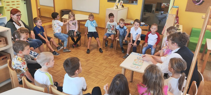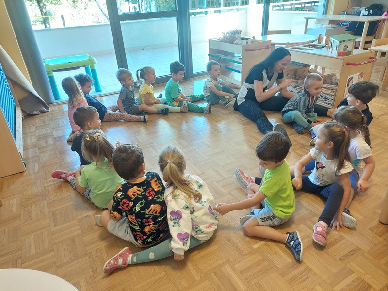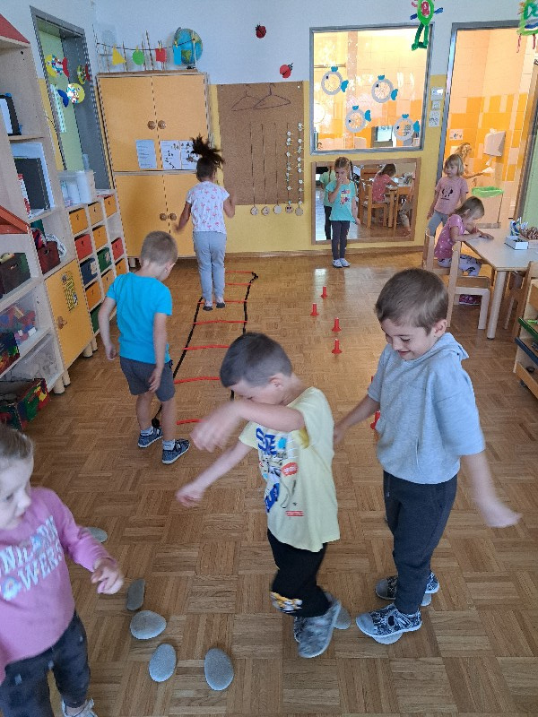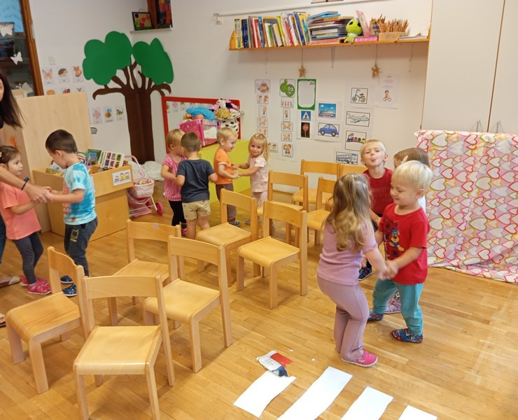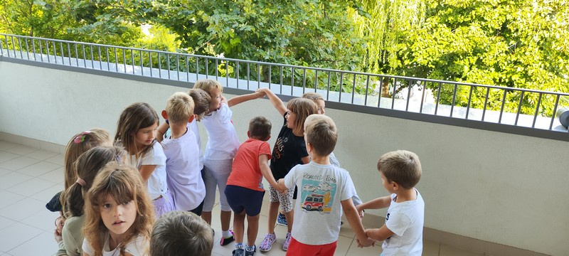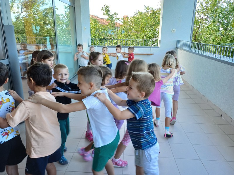 V novi skupini smo prve dni namenili medsebojnemu spoznavanju in oblikovanju prijetnega vzdušja. Ob različnih socialnih igrah smo se učili sodelovanja, poslušanja drug drugega in medsebojne pomoči. Skupne igre, ki so jih otroci nestrpno pričakovali, so poskrbele za še več smeha, sproščenosti in povezanosti v skupini. Ob koncu tedna pa smo skupaj spoznali pesem Prijateljska( M Voglar), ki nas bo spremljala skozi leto in nas vedno spomnila, da je v skupini najlepše, ko si znamo prisluhniti in se igrati drug z drugim.