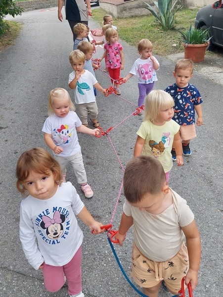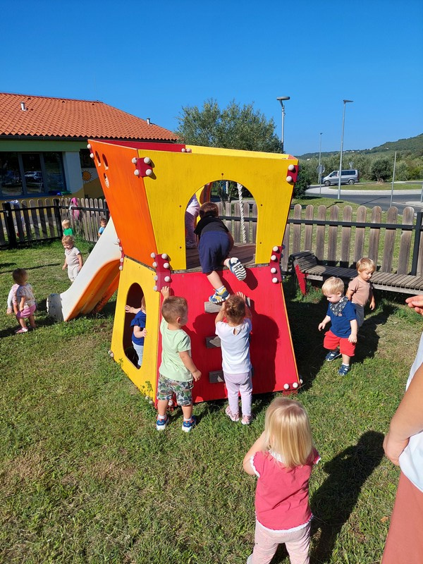 V uvajalnem mesecu so otroci spoznavali igralnico, vzgojiteljici in nove prijatelje. Igrali smo se z različnimi didaktičnimi igračami in veliko gibali na svežem zraku. Sprehodi nam že odlično uspevajo in tudi nova igrala so nam zelo všeč.
