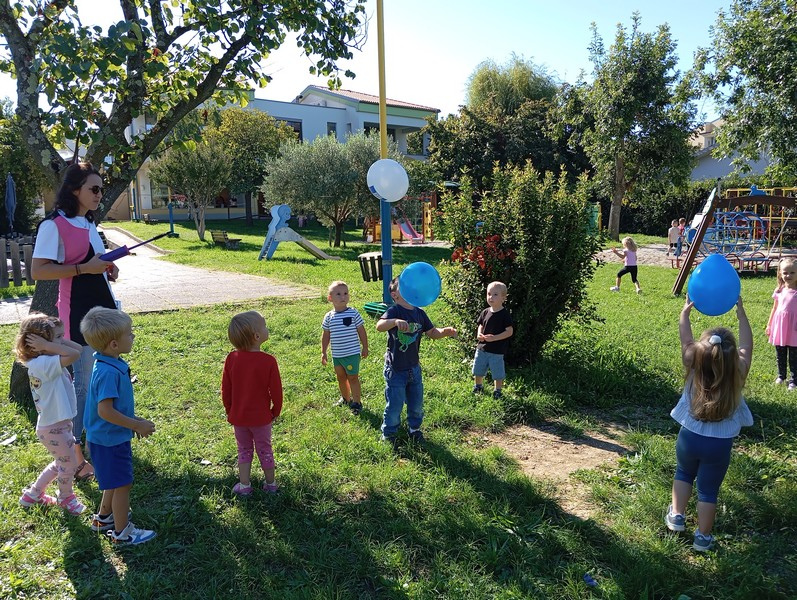 V tem mesecu smo spoznali nove igrače, stkali nova prijateljstva. Skupaj smo se učili pravil, ki nam pomagajo, da se imamo lepo in da je vsem prijetno. Ustvarjali smo s pisanimi barvami in različnimi materiali. Iz škatel smo izdelali vozila, s katerimi smo se igrali in zabavali. Veliko smo se igrali na terasi in na čisto novih igralih, tekali, skakali in se veselili raznih gibalnih iger.