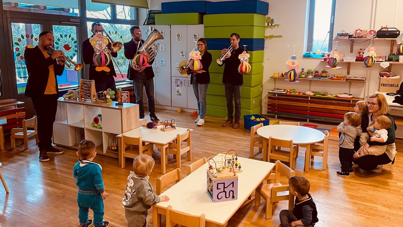 V vrtec so prišli na obisk učitelji Glasbene šole Koper, da bi nam na zabaven način predstavili trobila, ki jih poučujejo. Najprej so obiskali najmlajše v njihovih igralnicah, nato pa so v telovadnici pripravili predstavitev za ostale vrtčevske otroke in prvo triado osnovne šole. Predstavili so svoje inštrumente, pokazali, kako se nanje igra, ter nas razveselili z znanimi pesmimi, ob katerih smo z veseljem zapeli. Dopoldne je minilo v prijetnem vzdušju, zato jih z veseljem povabimo spet prihodnje leto!